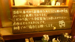 香川県の粉にこだわり、伊吹島のいりこを使うという、こだわりのあるお店で、店内はセルフスタイル。券売機で券を買って注文します。慣れると、このスタイルって気が楽でいいなあと思いますよ。