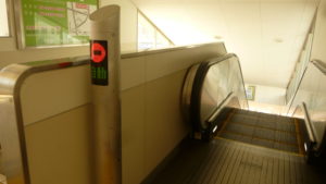 北・南の出入口はそれぞれ同じ構造になっていて、エスカレーター(上り専用)と階段、その横にエレベーターと、どれでも使える構造になっています。