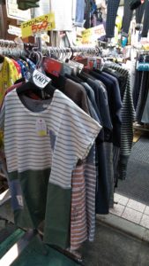 今は、エプロン風の上着が人気のようです。いろいろな種類のエプロン型上着がありました。自分にとってのお宝を探してみるのも、「ウェルカム」での楽しい買い物を多くの方に楽しんでいただきたいです。